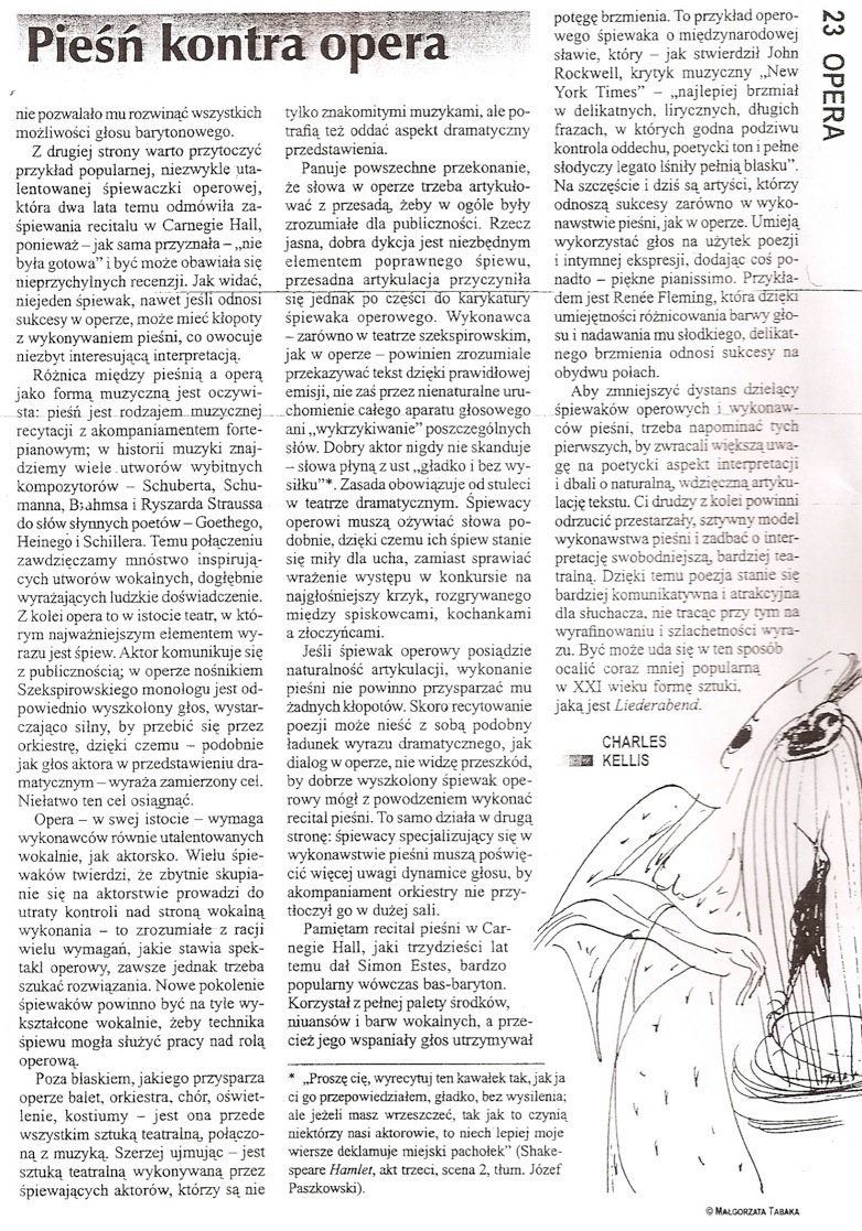 Art songs versus Opera translated and published in polish.
